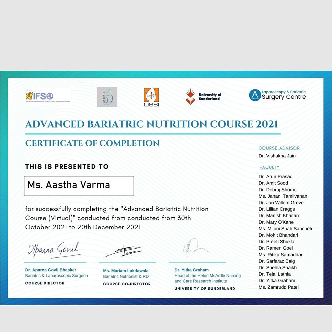 01certified diabetes educator, certified bariatric nutritionist, certified ayurvedic nutritionist,