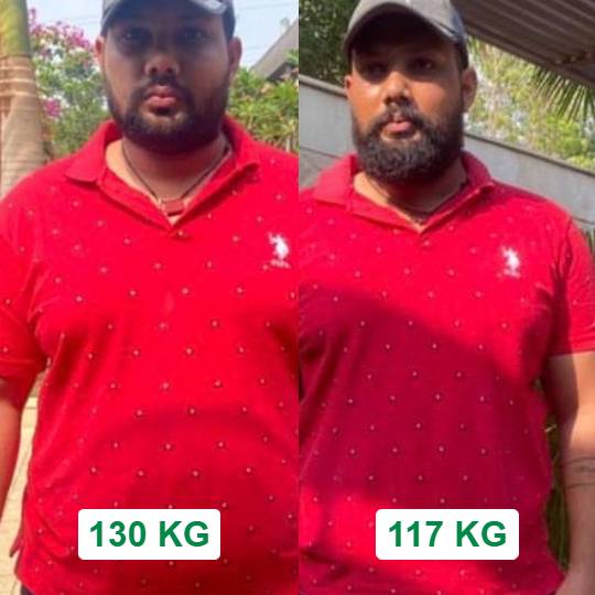 This client achieved weight loss from 130 kg to 117 kg in 3 Months.