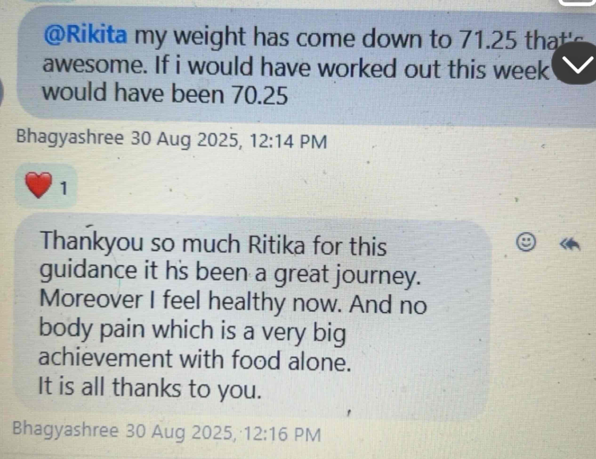 5Rikita Bhattar, a female coach with 2 years 9 months experience, specializes in empowering people through personalized coaching, helping with weight loss and disease management