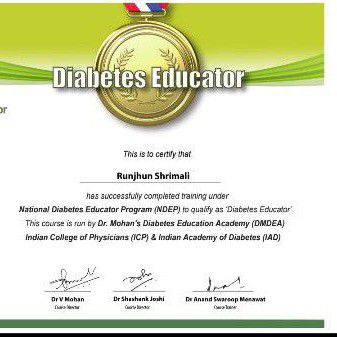 5I have done my Bsc in Clinical Nutrition and Msc. in Food science and Nutrition I am a certified Diabetic Educator I have 5 + years of professional experience Delt with multiple disease patients Done 50+ diet camps all over Udaipur with top doctors with collaboration of top pharma companies